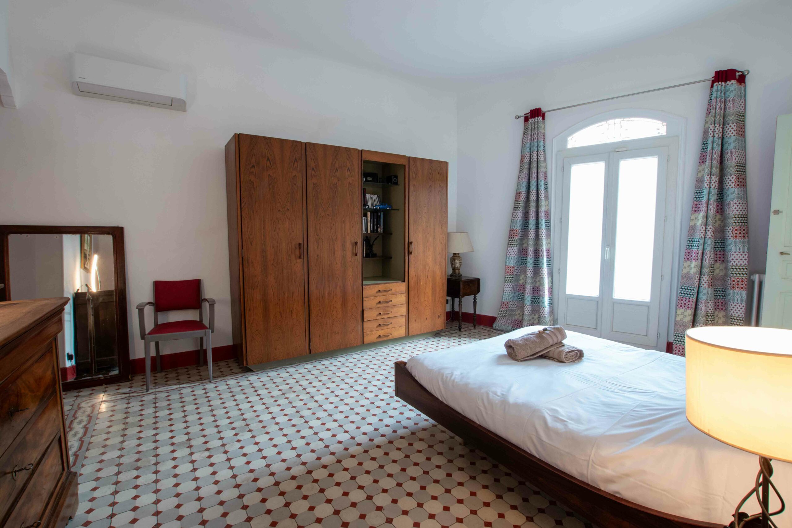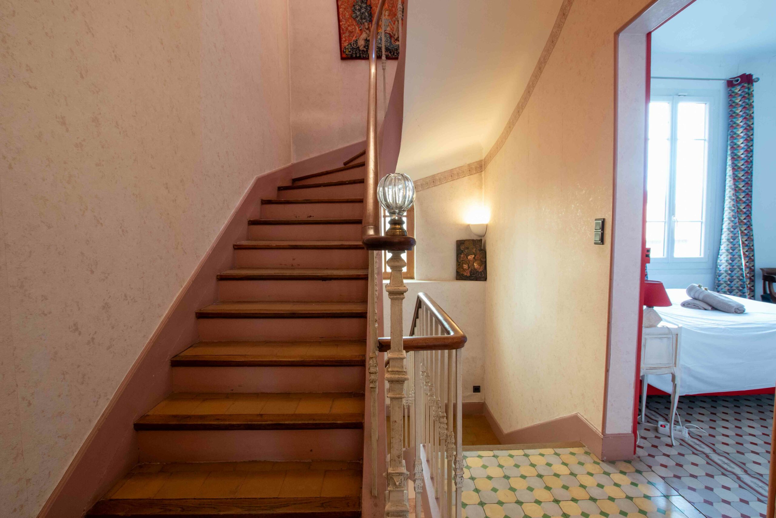 Les 5 chambres à coucher, les 2 salles de bain et les wc indépendants se distribuent sur deux étages. Une chambre est dédiée à 1 enfant.