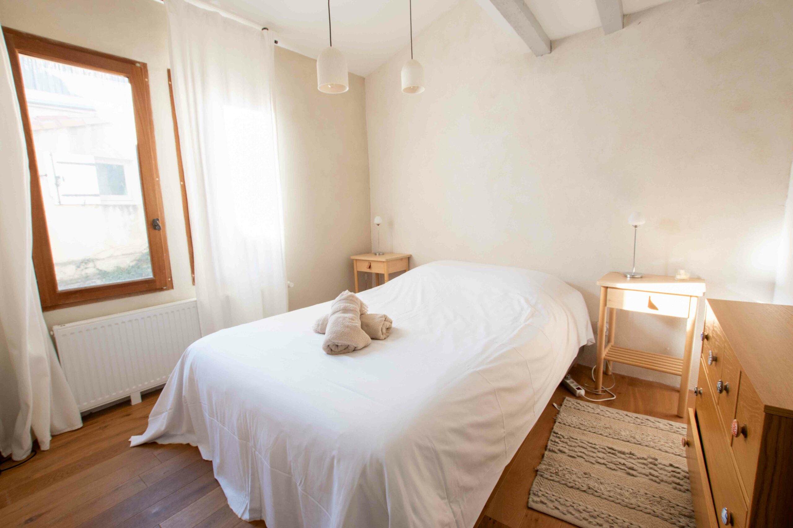Nichée au fond d’une cour ensoleillée dans un quartier pittoresque, notre maison de 122m2, entièrement rénovée dans le respect de la structure et des matériaux, peut accueillir jusqu’à 7 personnes.