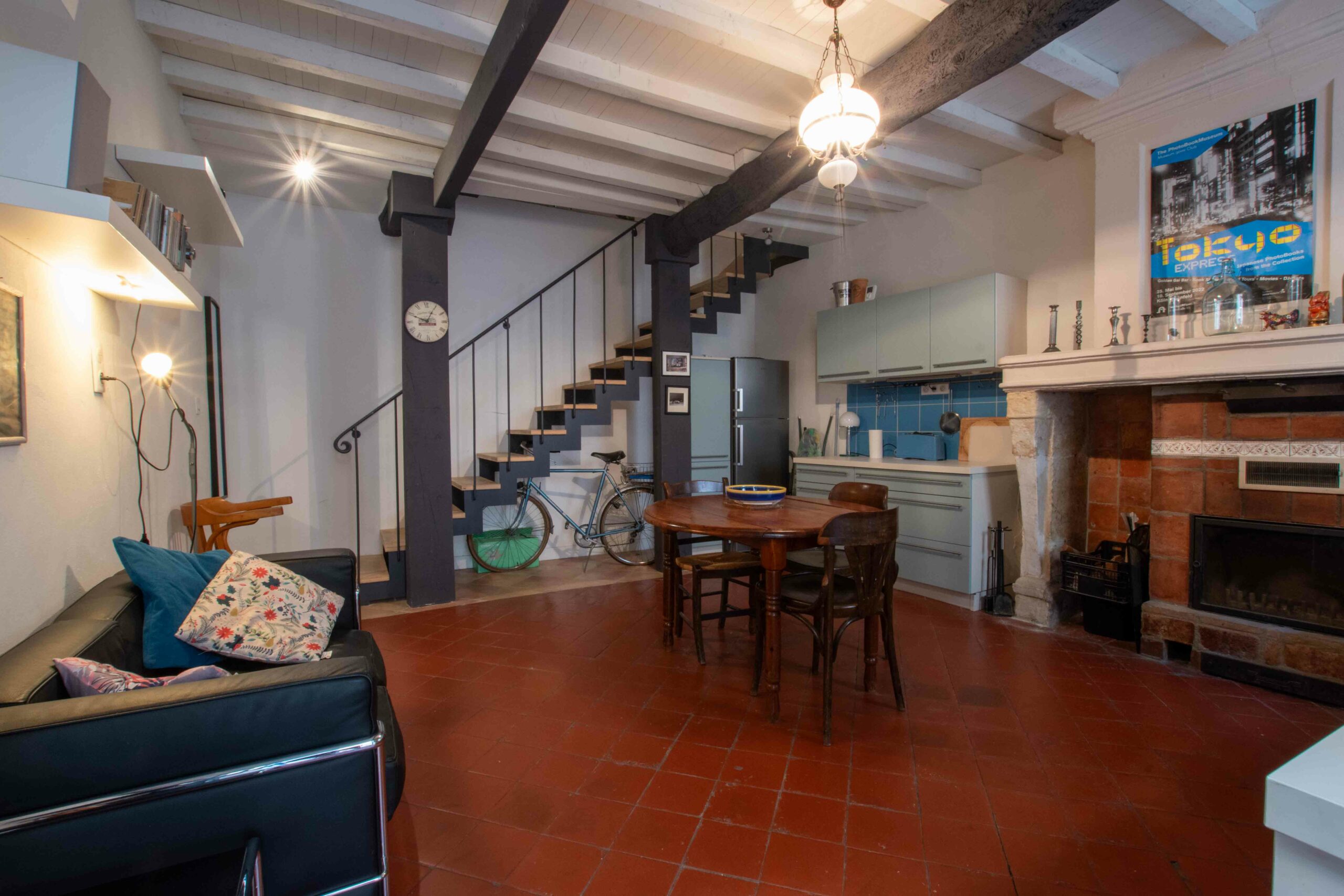 Cette rénovation a combiné les éléments originaux tels que les carrelages et les poutres avec un mobilier contemporain et un bon équipement de qualité, créant un espace confortable et relaxant pour vos vacances.