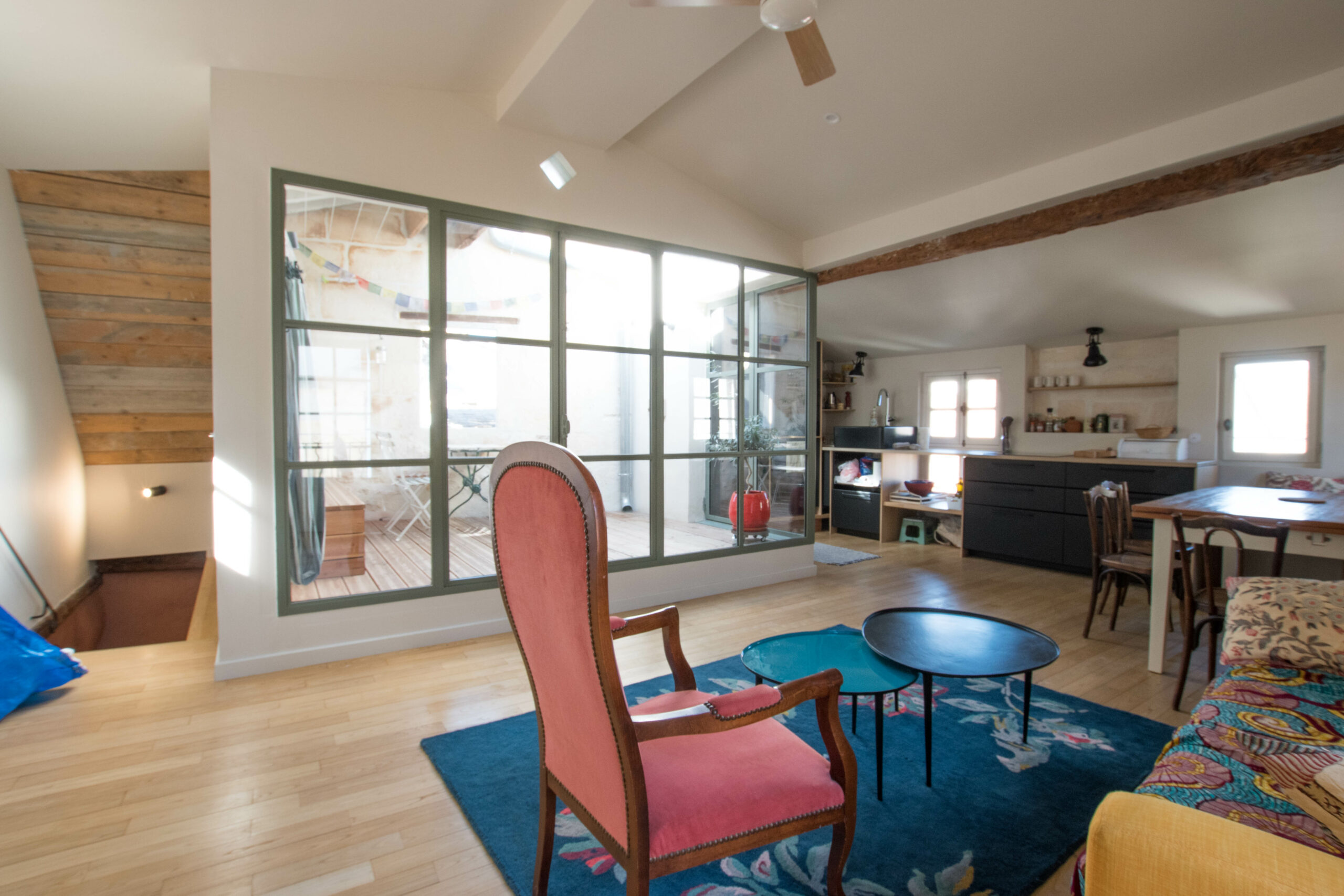 Au deuxième et dernier étage une cuisine ouverte climatisée avec un espace extérieur créée pour profiter de la douceur arlésienne.